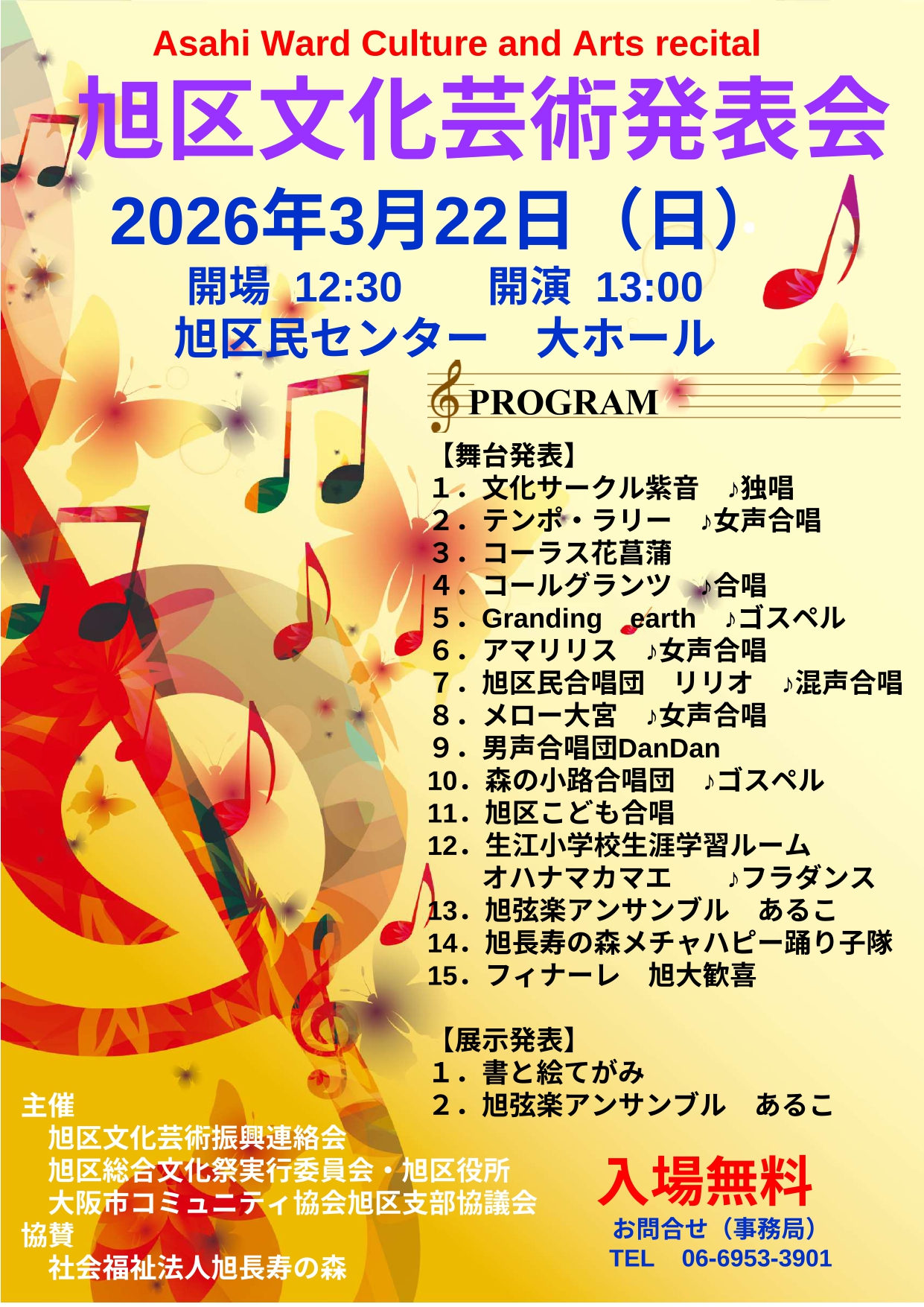 ・旭区文化芸術発表会 2026年3月22日(日)@旭区民センター 大ホール